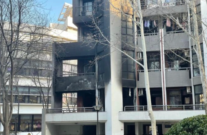 從被爆出火災發生時的視頻可以看到,發生火災的位置是一層樓最靠邊的房間,視頻中發生火災的房間,火勢較大,已蔓延至陽臺,樓下有穿著消防服裝的人員正在拿水槍滅火。