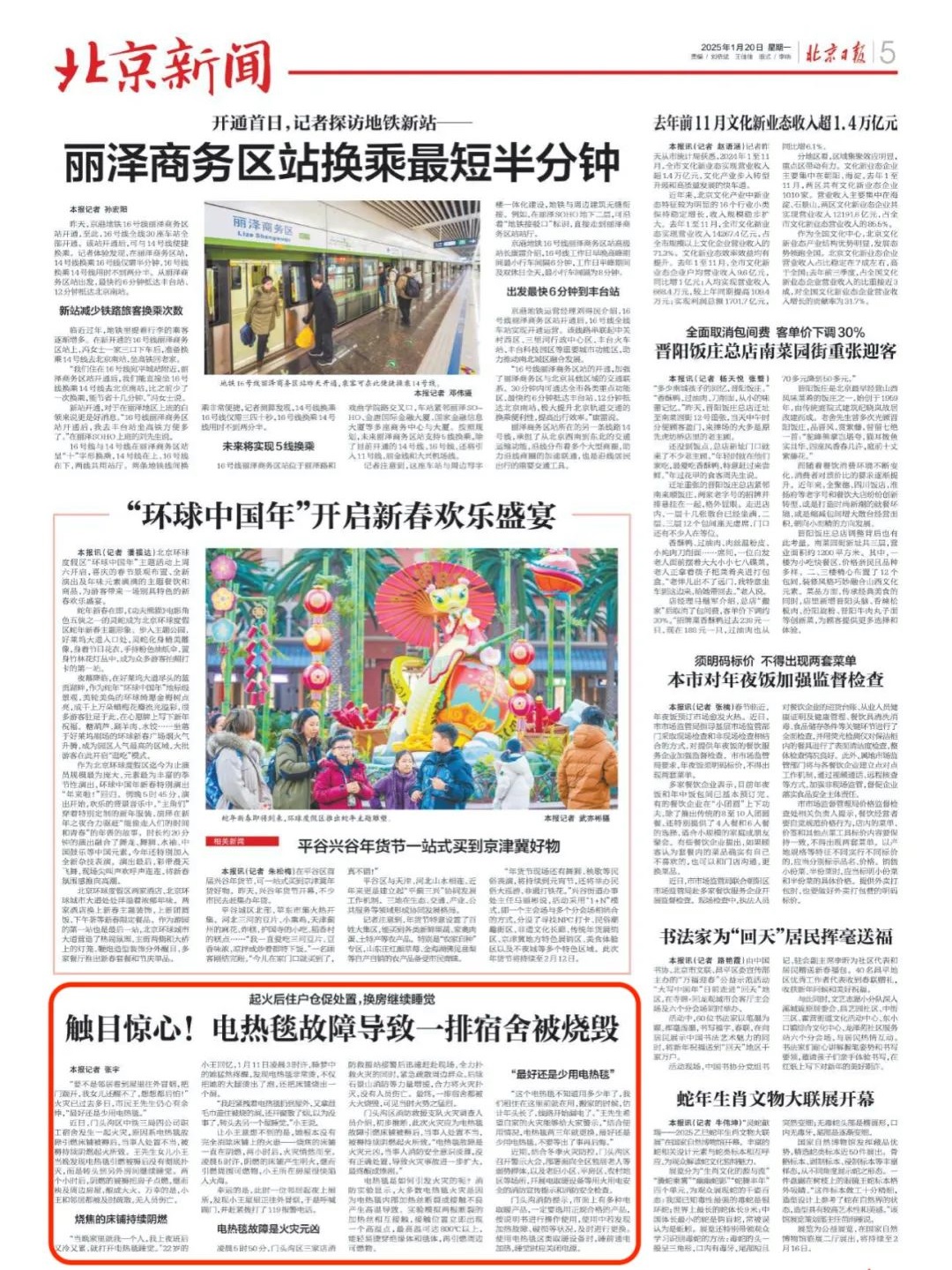 1月20日,北京日報報道新聞《觸目驚心!電熱毯故障導致一排宿舍被燒毀》。