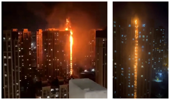 2 月 4 日晚上 10 點左右,河北省石家莊市橋西區一小區樓體南側外墻局部起火,火勢迅速自底層蔓延至頂層,并不斷冒出滾滾濃煙。