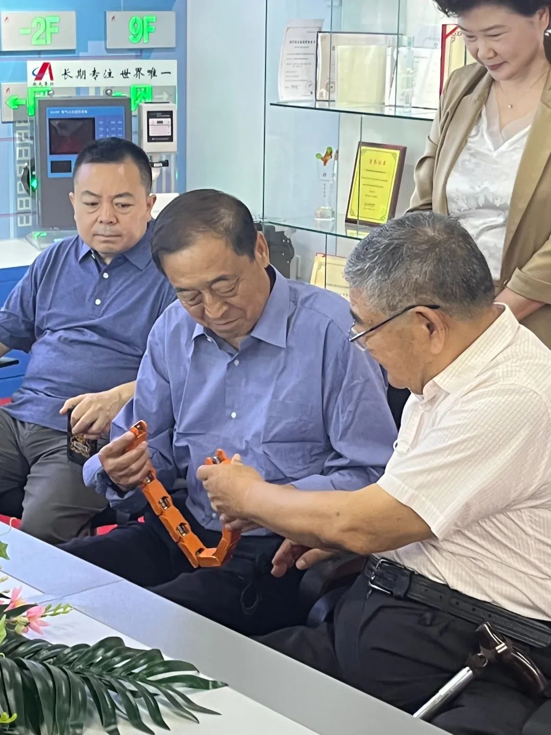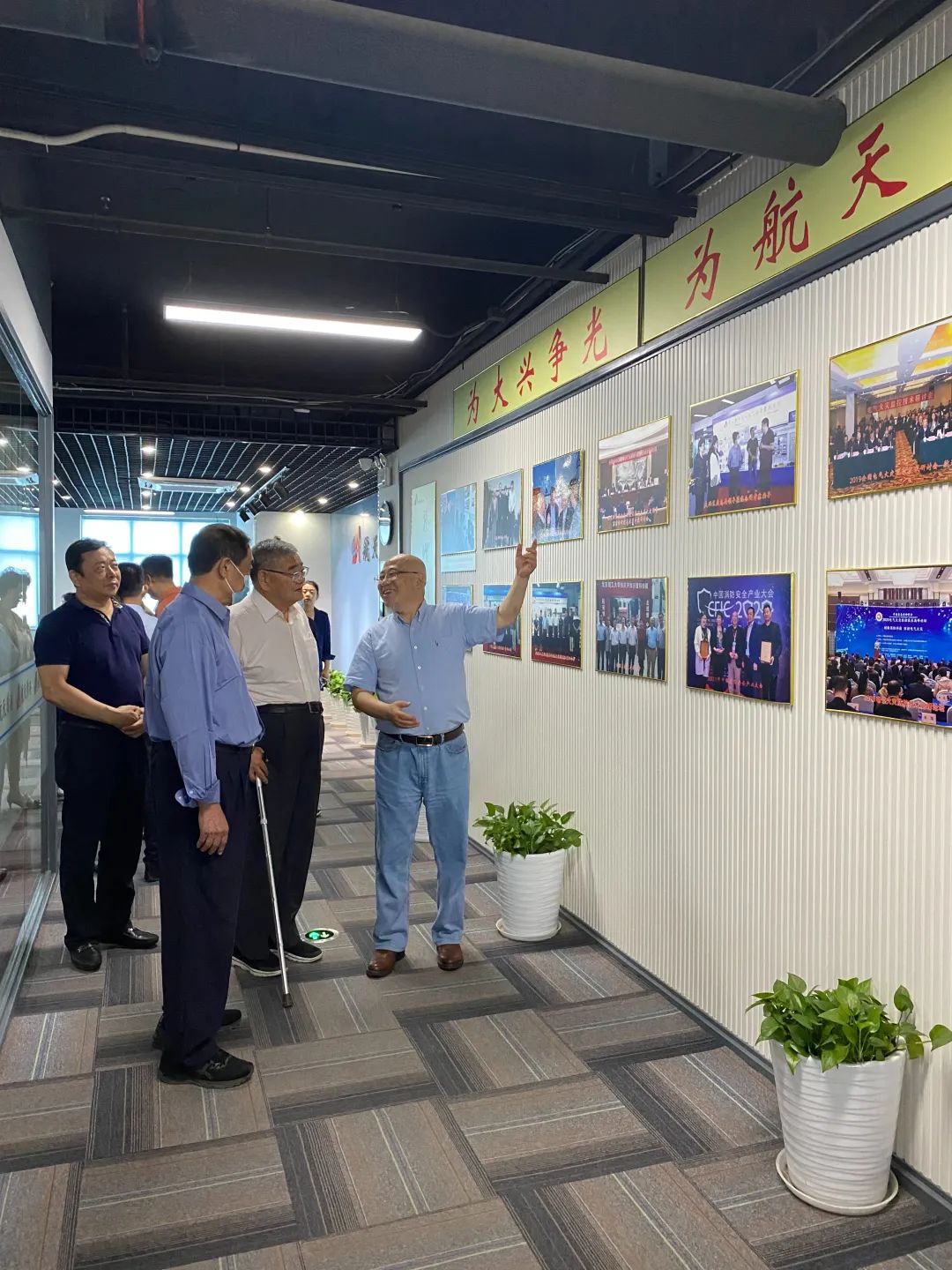 2022年6月30號,欣聞航天常興開發(fā)出“電衛(wèi)士”,幾個年逾七十的北理工校友,由老書記焦文俊和原北京市副市長趙鳳桐帶領(lǐng)幾位優(yōu)秀的老師和企業(yè)家來到公司考察。中國安防協(xié)會無人安全委員會主任吳志強將軍和航天常興研究院執(zhí)行院長伍林陪同。